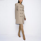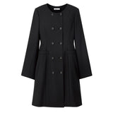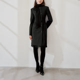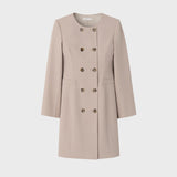 ダブルボタンの前開きで、ワンピースとしてもコートとしても2WAYで着用可能です。