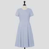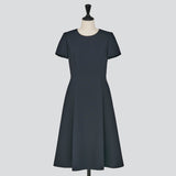 お袖付きでスカート部分がフレアーのワンピースです。袖口と裾はダブルフェイス仕立てにしてすっきりと軽く仕上げ、着心地が良く美しいシルエットです。