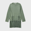 身頃と袖には定番のエンジェルヘアコットンを、スカート部分には ブラックとセージグリーンにはストレッチスーチングを、セピアベージュにはタフタを、色によって異なる生地を使用しています。