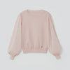 上品な透け感の編地で表現されたパフスリーブは、程よいギャザー分量で肩から腕を華奢かつ華やかに魅せてくれます。