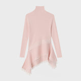 アシンメトリーなシルエットとフィットした身頃が、1枚で構築的なシルエットを生み出すニットトップ。