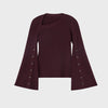 シャープな襟ぐりと袖のボタンディテールがデザインポイントのキャロルセーター。