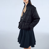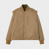 表身頃はステッチとパッチポケット付きのワークウェアディテール、裏身頃はボックスタブ風の胸ポケットやサイドポケットなどMA-1を踏襲したディテールをあしらっています。