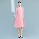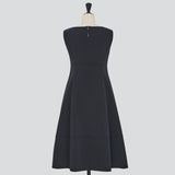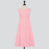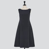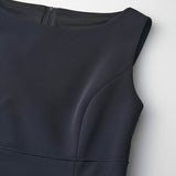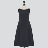 エレガントなボートネックラインとウエストのシルエットが美しいワンピース。