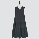 ダブルクロスのふくらみ感を持ちながらも軽やかな素材で、ティアードのギャザーが柔らかな表情をプラス。