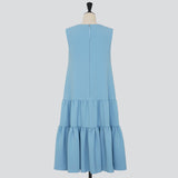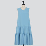 爽やかなブルーとVネックが上品なバランスを生むワンピース。