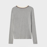 リブトリム部分は端にベロア調の糸を使用し、異なるテクスチャをお楽しみいただけます。