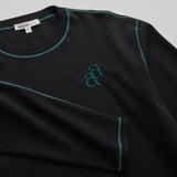 胸元には配色のダブルaのロゴ入り。(ブラックにはダークグリーン、ホワイトxブラックにはブラックの配色)