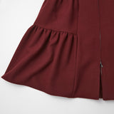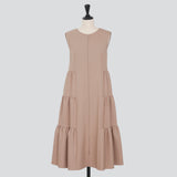 繊細に重ねられたティアードスカートが動くたびにやわらかな表情を生み出し、気品ある華やかさと抜け感のある印象に仕上げています。