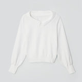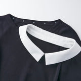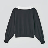ソフトなレーヨンブレンドの糸で編まれたこちらのニットトップは、エレガントでフェミニンなネックラインに取り外し可能な白衿が付いています。