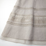 裾にはリネンの色に合わせて染め上げたシルクオーガンザ刺繍をあしらい、装いに上質な華やぎを添えました。