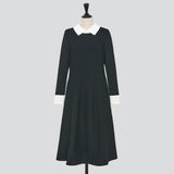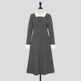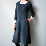 襟とカフスが配色になったニットワンピース。