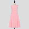 エレガントなボートネックラインとウエストのシルエットが美しいワンピース。