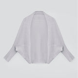 天然素材ならではの糸の表情を生かした、シンプルな編地のニットボレロ。