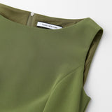 NEWマットストレッチグログランのシンプルなフィットアンドフレアのワンピース。