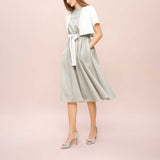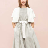 合わせやすいシンプルなデザインで、前端の細いタック柄とトリミングがアクセントになっています。