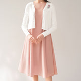 バスト部分まではコンパクトなデザイン、バスト下から膝下まではたっぷりとしたフレアが広がります。