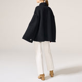 フレアシルエットの身頃と太めの袖で、インナーにローゲージニットを着てもリラックスしてお召しいただけます。