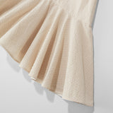 裾はアシンメトリーなフレアドレープをあしらったナンタケットトップ。