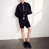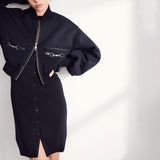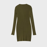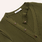 ストレッチ性のある太めのリブの編地を使用し、視覚的にも楽しめる一着です。