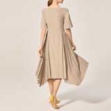 ワイドなハーフスリーブと長めの着丈で大人らしい印象のキャロリンドレス。