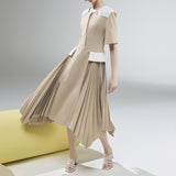 サイドにはハンカチーフヘムのプリーツがあしらわれていて動きのあるデザインに。