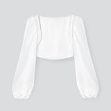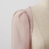 羽の様に軽く、たっぷりととった袖口のドレープが腕の動きによって揺れ動き、優雅な表情を見せてくれます。