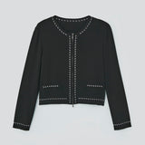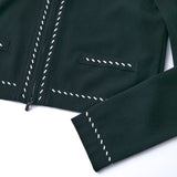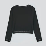 ステッチディテールは、編みでホールを開け、ニットテープを手で一つ一つ通して作成しています。