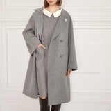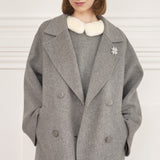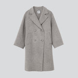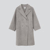 クラシカルな佇まいにモダンなシルエットを融合させたダブルブレストコートは、パタンナーが細部までこだわり抜いた設計になっています。ゆったりとした分量感がありながら、さらりと羽織るだけで様になるシルエットに。