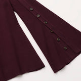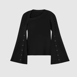 シャープな襟ぐりと袖のボタンディティールがデザインポイントのキャロルセーター。