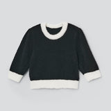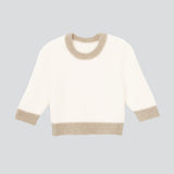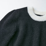 襟ぐり、袖口と裾が配色になっているニットトップス。ホワイト×ベージュ、ブラック×ホワイトの2色展開です。ややパフスリーブの袖になっております。スカートにもパンツにも合わせやすい着丈なので、コーディネートにも取り入れやすい1着です。