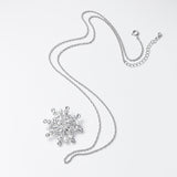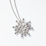 雪の結晶をモチーフにしたブローチ。チェーンを付けてネックレスとして、チェーンを外してブローチとして楽しめる2WAYデザインです。軽量で快適な使い心地です。
