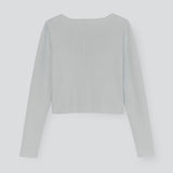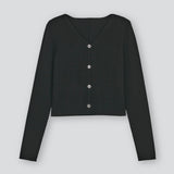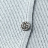 リブのピッチを細めにすることで上品な印象に仕上げました。前立てにキラキラと輝くビジューボタンをあしらっており、華やかな場面にもぴったりのアイテムです。
