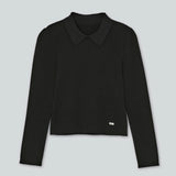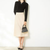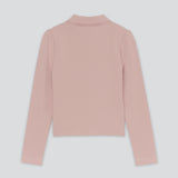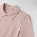 女性らしい小さめの襟の形と袖山に入ったタックは適度なボリュームが、顔周りをすっきりと見せてくれます。