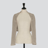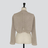 肩まわりや二の腕をカバーしデコルテを綺麗に見せてくれるので、小顔&着痩せ効果もあります。天然素材ならではの上品な色と上質なカジュアル感で、季節を問わずお召しいただけます。