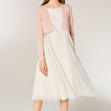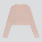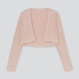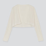 肌触りの良い起毛加工をかけた、シルク100%の糸を使用したニットボレロ。