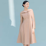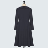 ショールカラーとフィット&フレアシルエットが、優雅でドラマティックな魅力を引き立てるドレス。