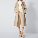 ウォータープルーフのタフタ生地を使用したトレンチコート。