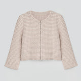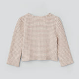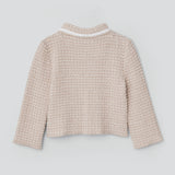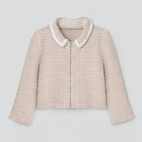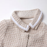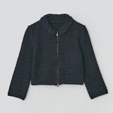 取り外し可能な襟がデザインポイントのニットツイードジャケット。