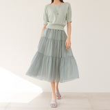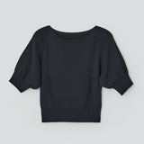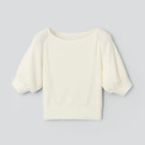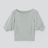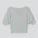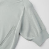 ボックスシルエットの身頃とふんわりした袖の形で女性らしい柔らかな印象に。