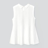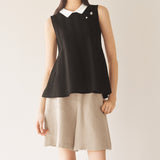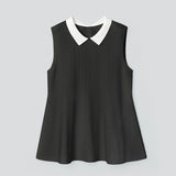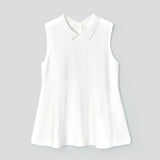 Aラインシルエットがフェミニンな印象の襟付きニットトップ。