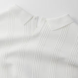 身頃は編み立てでフレアを成型し、立体的なストライプ柄を作り出しています。