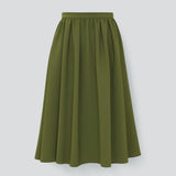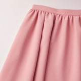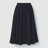 同型異素材のドットスカートとは分量を変え、前スカートにタックを追加して美しいシルエットを出しています。