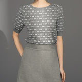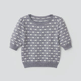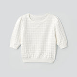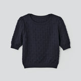 繊細で立体的なリボンステッチが魅力的な、ハーフスリーブニットトップ。