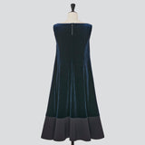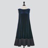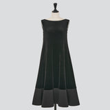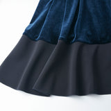 ベロアとダブルクロス素材を組み合わせたAラインフレアドレス。