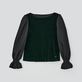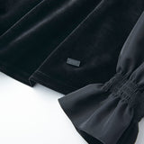素材:表地:ストレッチベロア(トリアセテート70%、ポリエステル25%、ポリウレタン5%) 袖:ポリエステル100%