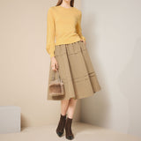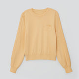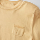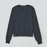 襟リブ部分にはさりげないヘリンボーンステッチをあしらい、上品な表情を演出。