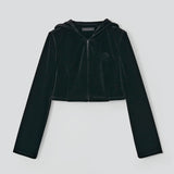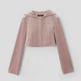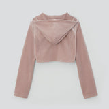 クロップド丈のジップアップパーカ。