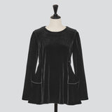 前身頃のサイドパネルと後ろウエスト下に施された立体的なフレアが美しいシルエットを生み出し、動くたびに優雅な印象を演出します。