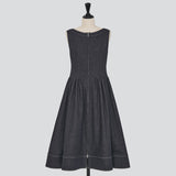 華やかに広がるフレアシルエットが印象的なストレッチデニムドレス。